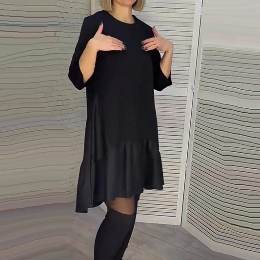 🔥50% Rabatt heute ✨Locker plissiertes elegantes schwarzes Kleid mit siebenzackigen Ärmeln