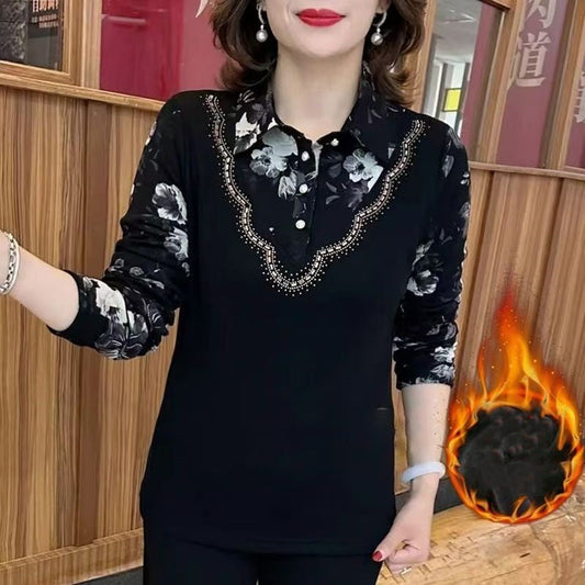 Verdicktes Winteroberteil mit Halbknopf und Druck für Damen