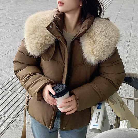 Women's Warm Full-Zip Short Jacket with Puffy Collar