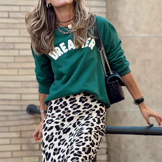 Women’s 2-Piece Sweatshirt & Leopard Print Skirt Set
