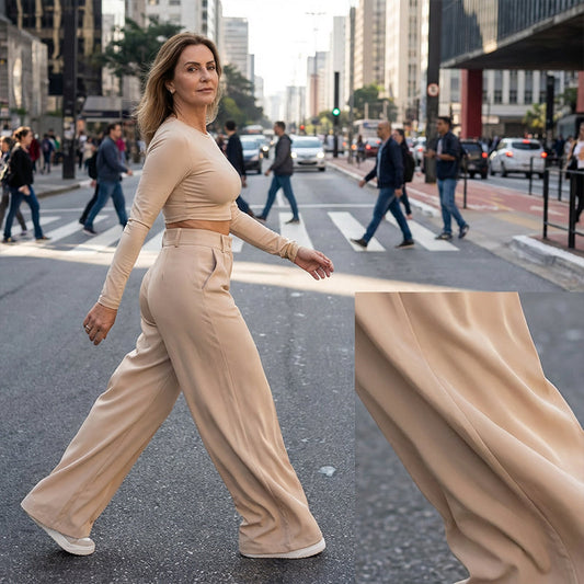 ⌛ Nur noch 3 Tage – 50 % auf alles! ⏰ Damen-Hose mit hohem Bund, weitem Bein und einfarbigem Bein