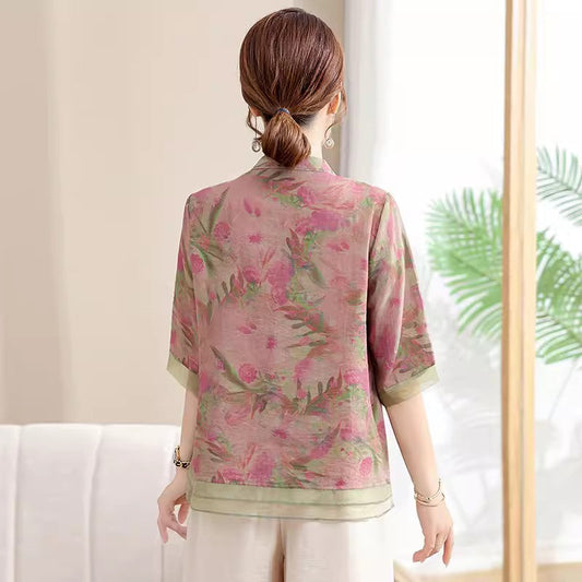 Women's Summer Atmungsaktiv Floral Kurzarm & Hose Anzug