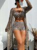 3-teiliges Badeanzug-Set für Frauen - gerafftes Bikini-Oberteil, Shorts mit hoher Taille und transparenter Überwurf