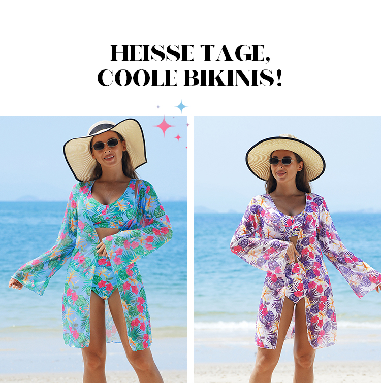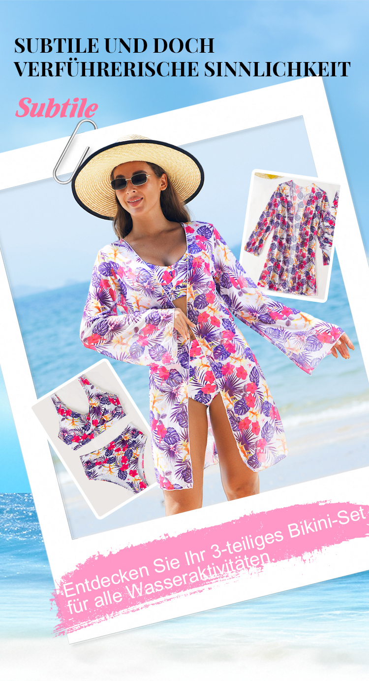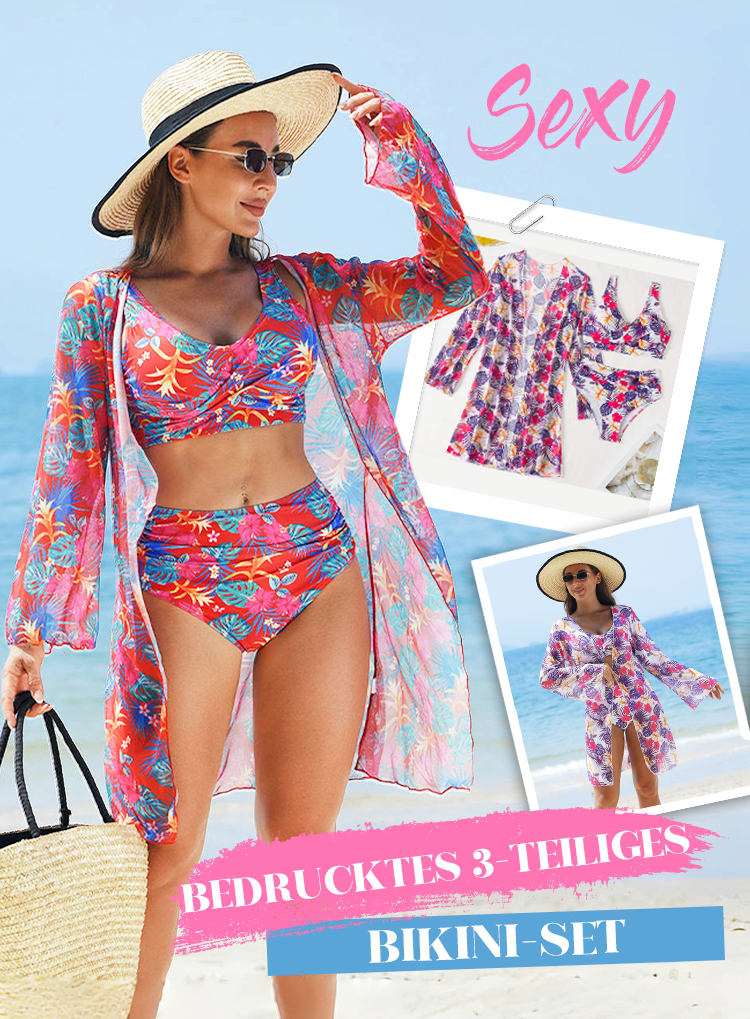 🏖️👙Modisches, mehrfarbig bedrucktes 3-teiliges Bikini-Badeanzug-Set für Damen