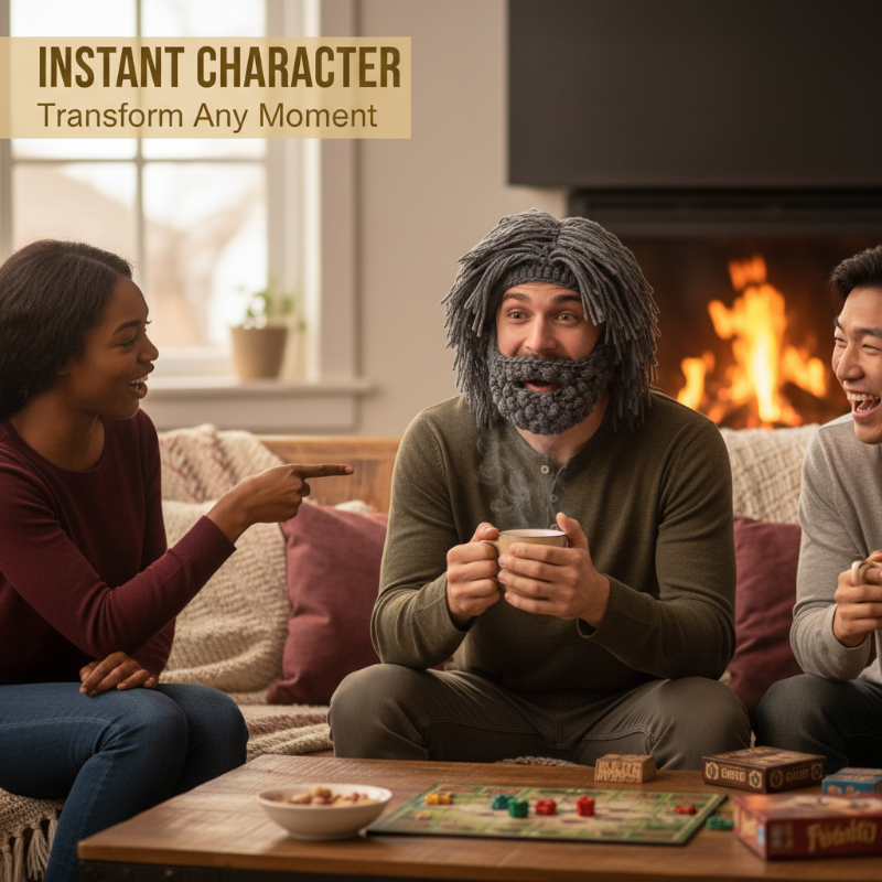 EINZIGARTIGES DESIGN – Heben Sie sich mit dieser auffälligen Höhlenmensch-Perücke und Bartmütze aus der Masse ab. Es ist ein perfekter Gesprächseinstieg und verleiht deiner Wintergarderobe eine spaßige, wilde Note.