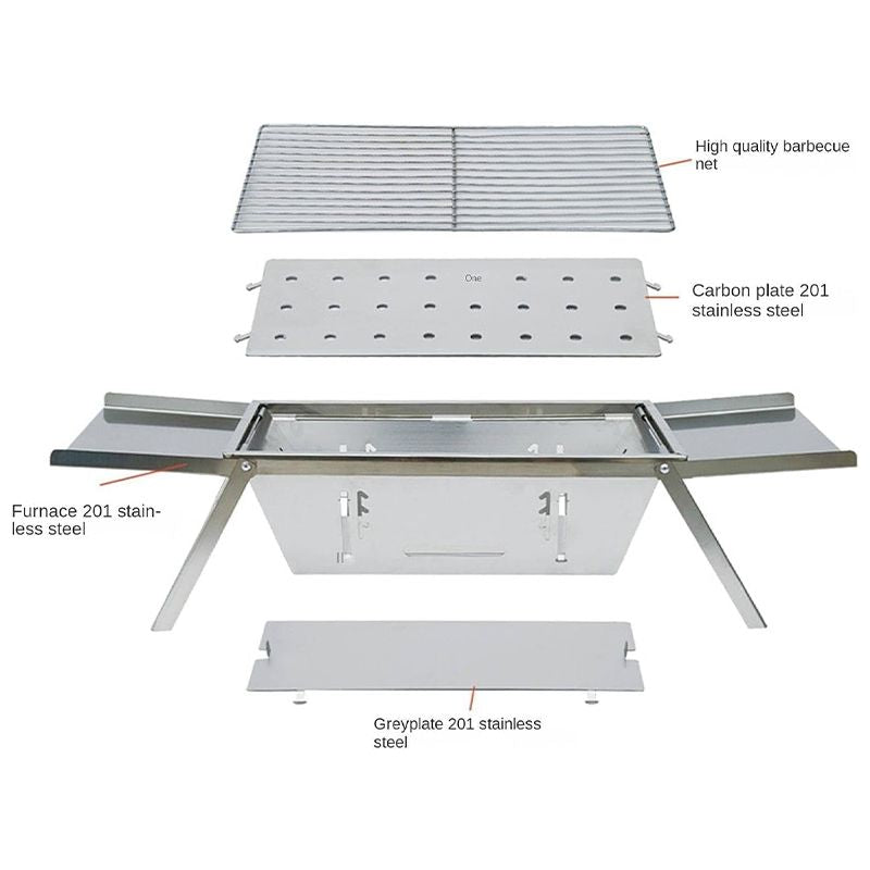 Paketinhalt: 1 × Klappbarer Edelstahl-Grill für draußen