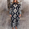 Lässiges, bedrucktes Langarmkleid im Bohemian-Stil für Damen