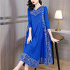 VIELSEITIG MITTLERE LÄNGE - Dieses weite, plissierte Kleid mit Midiärmeln und V-Ausschnitt hat eine vielseitige Midi-Länge, die eine perfekte Balance zwischen Eleganz und Bequemlichkeit bietet. Das Kleid fällt unterhalb des Knies und bietet einen eleganten Look, der sich für verschiedene Anlässe eignet.