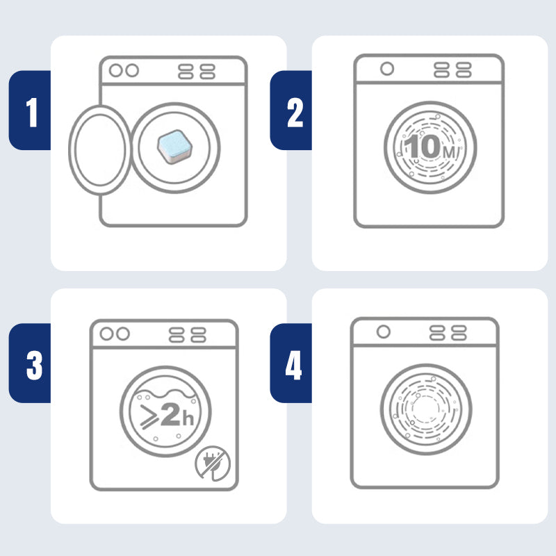 DIE LEBENSDAUER DER MASCHINE VERLÄNGERN: Die regelmäßige Verwendung dieser Reinigungstabletten verhindert langfristige Ablagerungen, die zu Schäden führen können, und bietet so eine hervorragende Pflege für Ihre Waschmaschine und verlängert deren Lebensdauer.