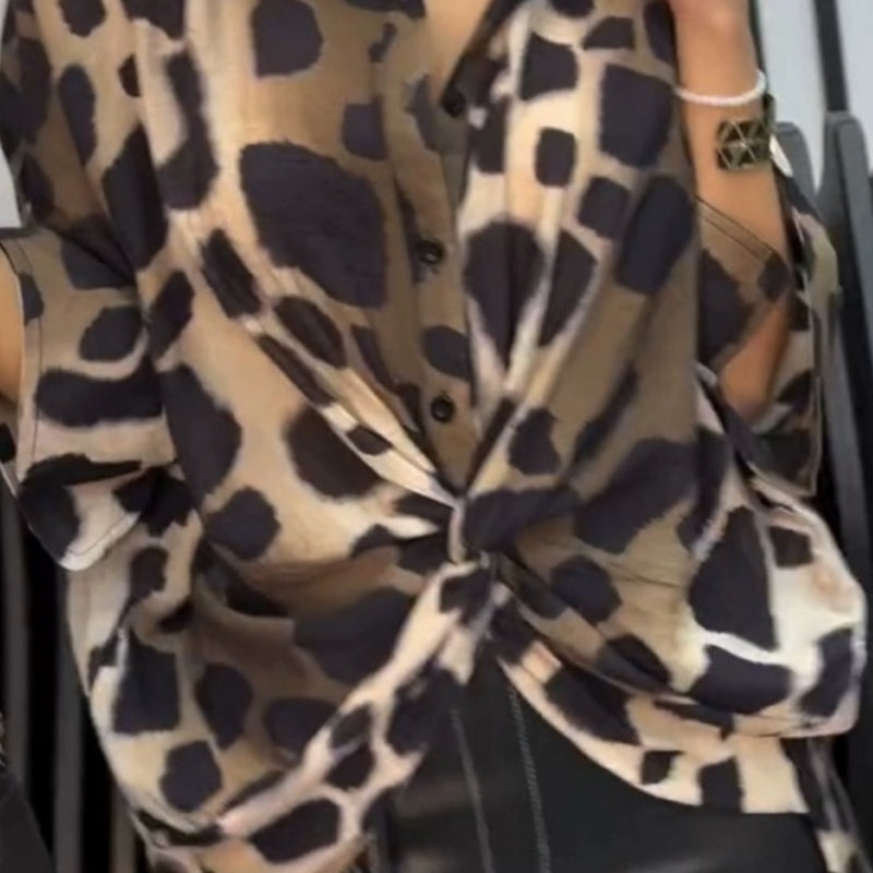 Lockeres Hemd mit Dreiviertelärmeln, Leopardenmuster und Hemdkragen