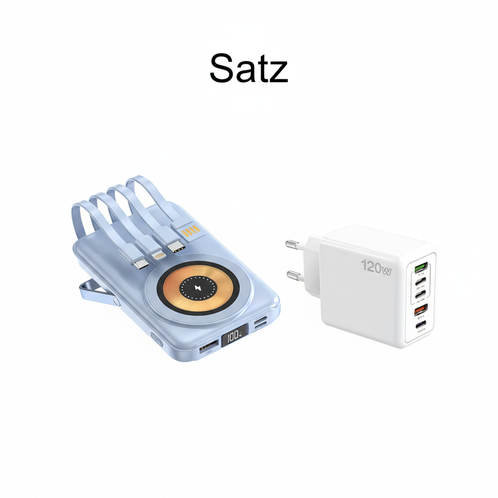 LEISTUNGSSTARKE KRAFT – Mit einem 10.000-mAh-Akku mit hoher Energiedichte liefert diese Powerbank zuverlässige Energie für mehrere vollständige Aufladungen des Telefons. Die Schnellladeversion unterstützt bis zu 22,5 W kabelgebundene Leistung und 15 W kabelloses Laden. Eine kompakte Lösung, die hohe Kapazität mit schneller Lieferung für den täglichen Gebrauch kombiniert. Ganz gleich, ob Sie Ihr Handy zwischen zwei Meetings oder auf einer langen Reise aufladen möchten, Sie bleiben ohne Unterbrechung verbunden.