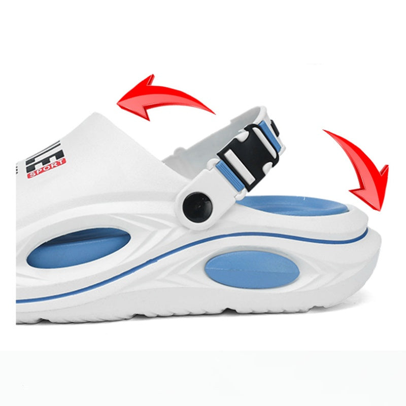 UMWANDLBARE FERSENRIEMEN: Der verstellbare Rückenriemen verwandelt sich in Sekunden vom sicheren Hausschuh in eine offene Sandale. Einfach nach unten klappen für schnelle "Schlupf" -Bequemlichkeit oder anziehen für stabile Unterstützung bei aktiven Bewegungen im Haus.