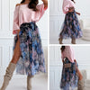 FLIEßENDER GEDRUCKTER MESH-ROCK MIT FEINEN DETAILS – Der leichte Mesh-Rock bewegt sich bei jedem Schritt anmutig und verfügt über ein wunderschönes Druckdesign, das Eleganz und einen Hauch von Verspieltheit hinzufügt.