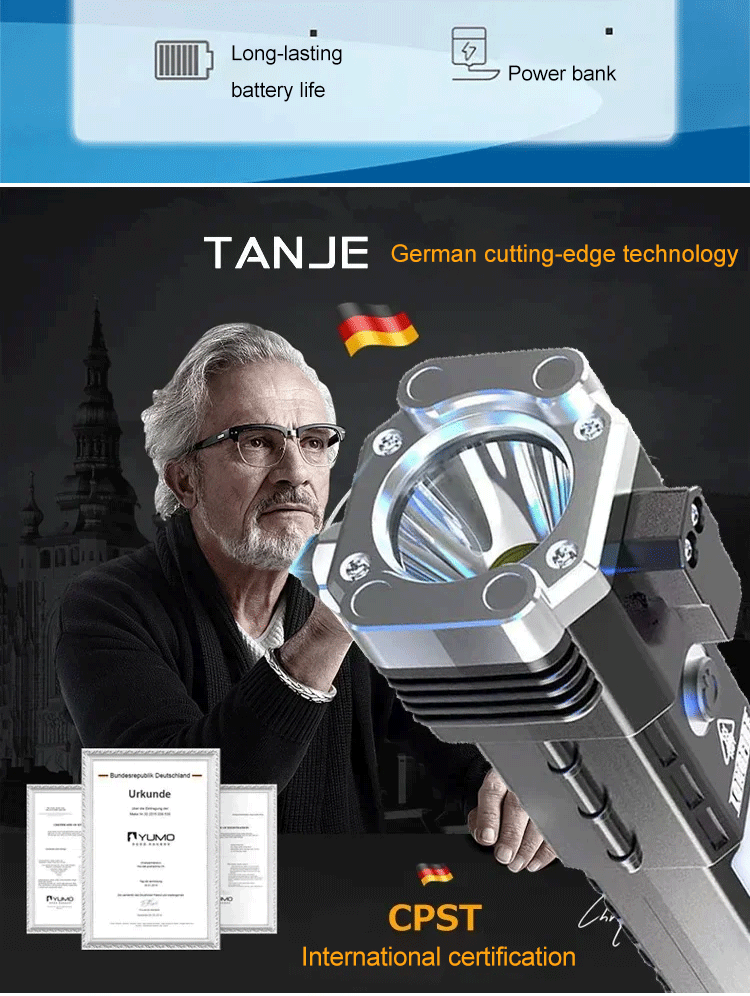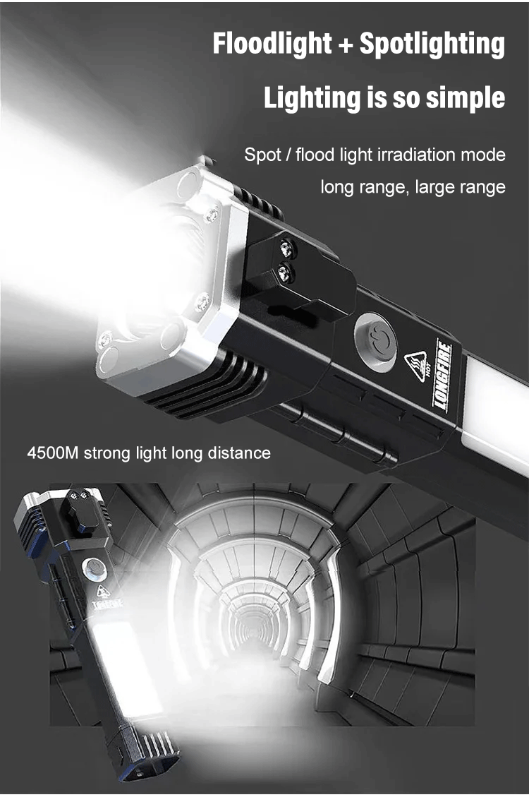 Hauptlampe: 10-mal heller als gewöhnliche Glühlampen-Taschenlampen. Leuchtweite 4500 Meter/2,8 Meilen (starkes Licht)!