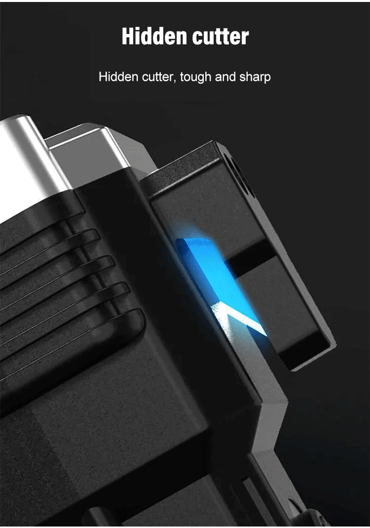 Versteckter Cutter: Scharf genug, um um Sicherheitsgurte, Seile usw. zu schneiden..