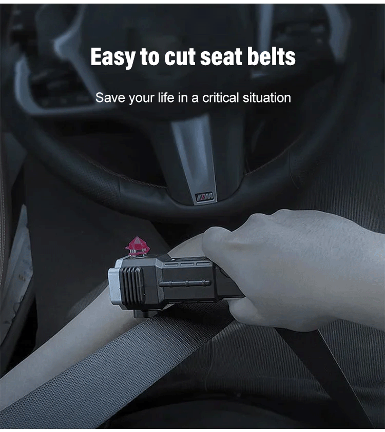 Notfall-Hammer: Brechen Sie in einer Notsituation einfach die Autoscheibe ein.
