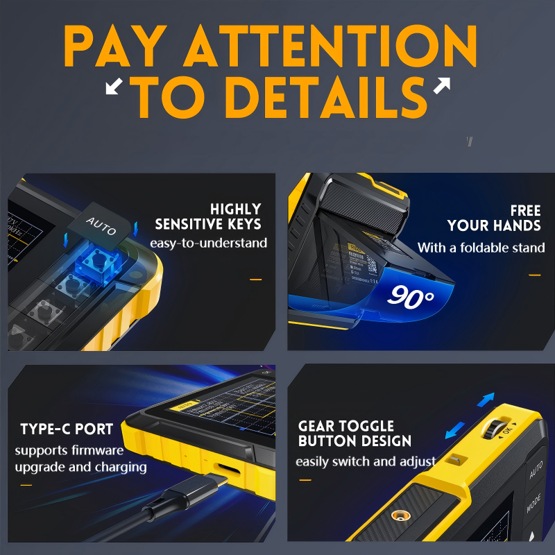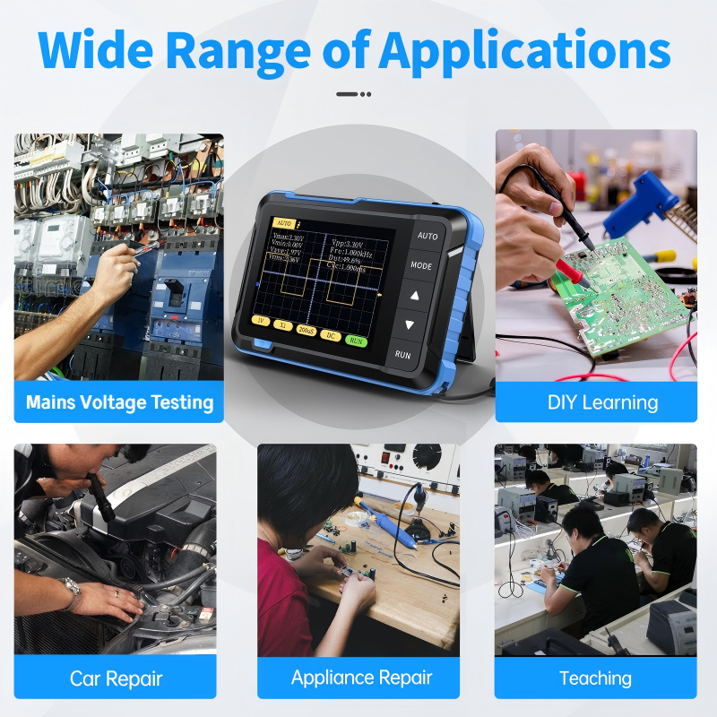 KOMPAKT UND LEICHT: Dieses vollständig montierte Oszilloskop im Taschenformat lässt sich leicht überallhin mitnehmen. Es ist das perfekte Diagnosewerkzeug für Wartungstechniker, Studenten und Hobbybastler, die unterwegs zuverlässige Messungen benötigen.