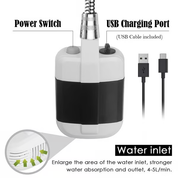 - 🚿Der eingebaute 2200-mAh-Akku kann über das USB-Ladekabel vom Laptop, Autoadapter, Computer oder einer Powerbank aufgeladen werden.