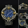 Mysteriöse Forbidden Bullet Skull Armbanduhr, handgefertigt mit goldenem Totenkopf und Kugeldetail. Diese Armbanduhr ist super kühn, klobig, Heavy Metal und total knallhart, sie ist ein unverwechselbares Statement der tragbaren Kunst.