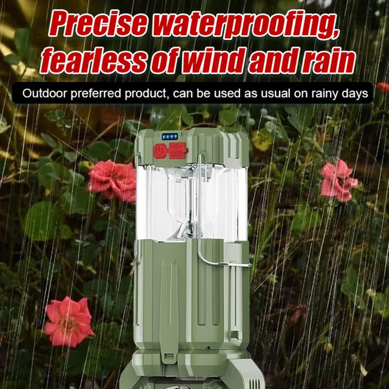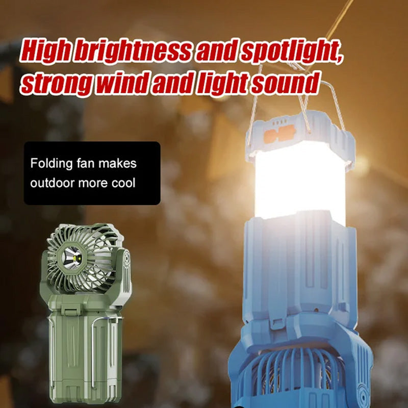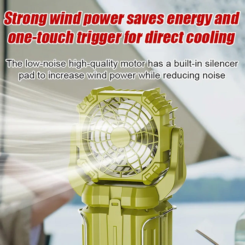 ZWEIFACH-FUNKTION – Ultrahelle 100–200 m LED-Strahlen durchdringen die Dunkelheit, während der leise Turbo-Ventilator kühlende Luft liefert. Wechseln Sie blitzschnell zwischen den Modi – beleuchten Sie Pfade, kühlen Sie sich am Zelt oder feiern Sie Gartenpartys. Zwei Tools, ein robustes Gerät!