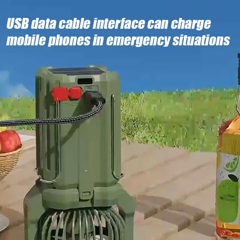 SOLARBETRIEBENE EFFIZIENZ – Nutzen Sie das Sonnenlicht mit dem integrierten Solarpanel für umweltfreundliches Aufladen! Der wiederaufladbare Akku speichert Energie für 8–12 Stunden Licht oder Ventilatorbetrieb. Keine Kabel, kein Ärger – perfekt für Camping, Terrassen oder Notfälle. Nachhaltige Energie meets netzunabhängige Bequemlichkeit!