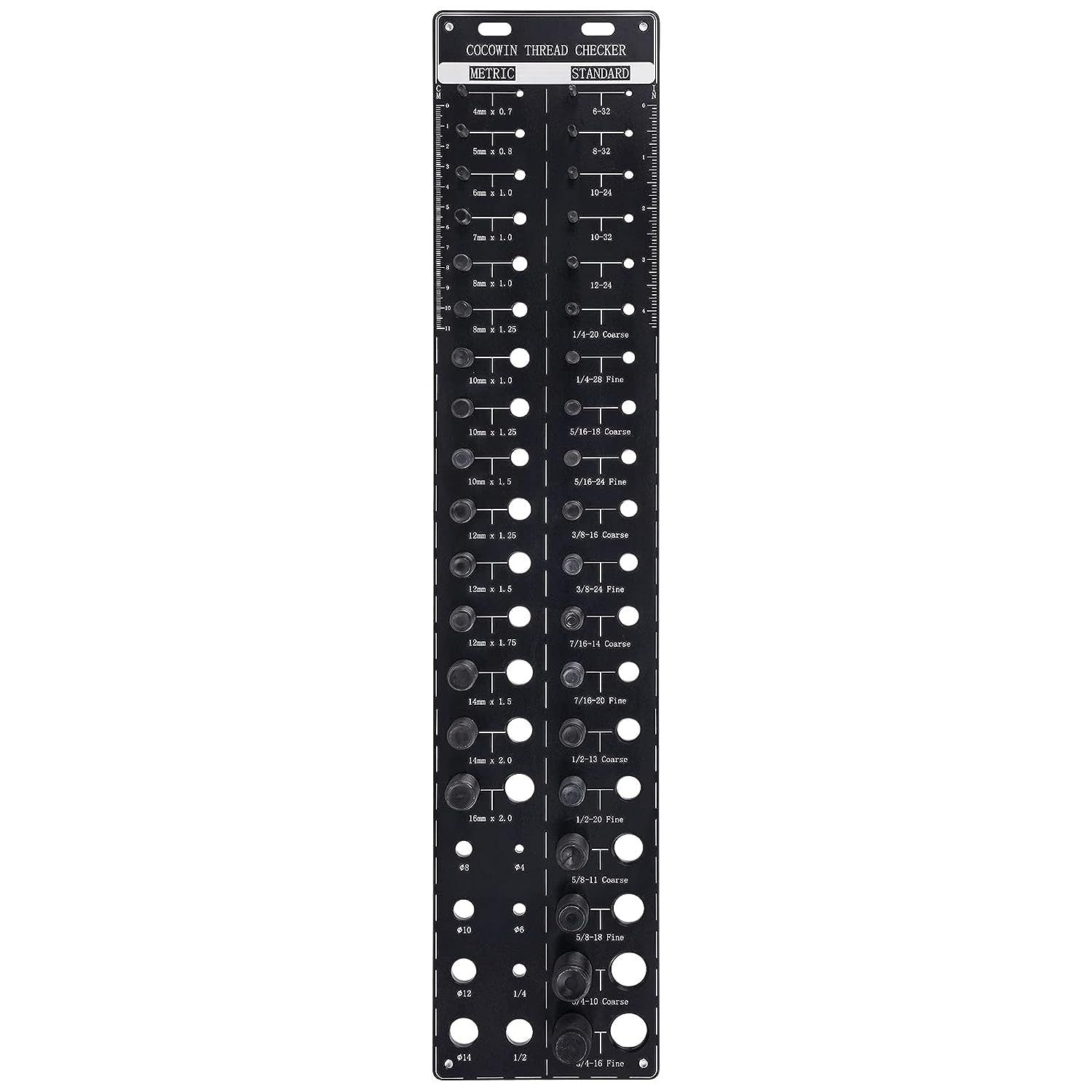 UMFANGREICHE MAßERKENNUNG - Mit 28 verschiedenen Maßen zeichnet sich unser Gewinde-Prüfer für Muttern und Schrauben durch die Identifikation von 14 metrischen Gewindemaßen und 14 Standardgewindemaßen aus. Es ist ein umfassendes Werkzeug zur schnellen Identifikation des richtigen Gewindemaßes und der -steigung.