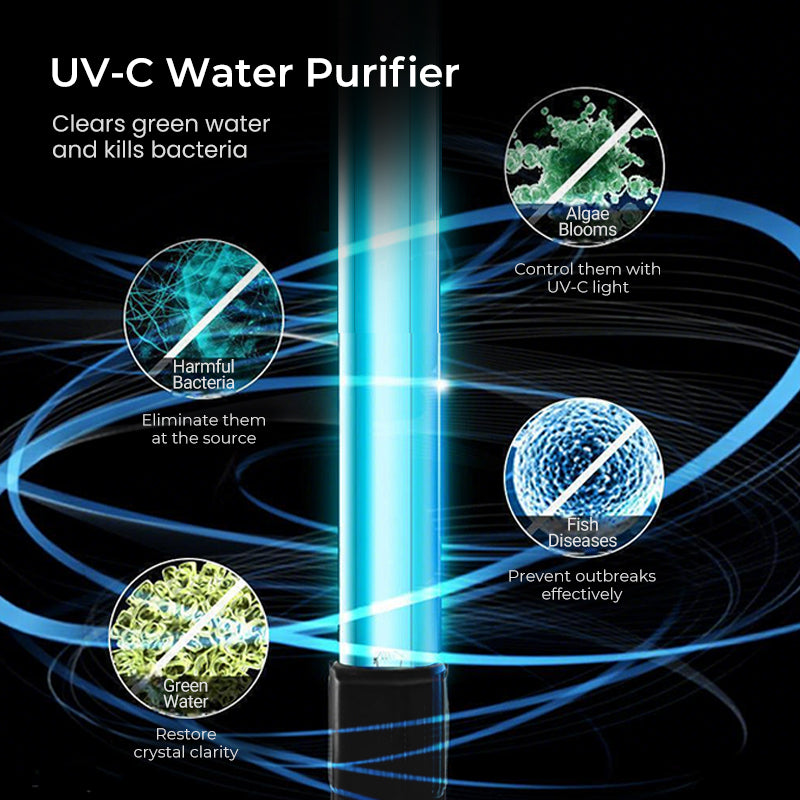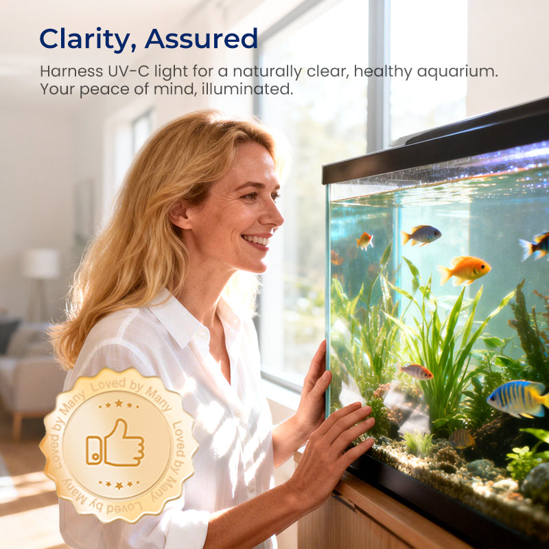 LEISTUNGSSTARKE UV-C-STERILISIERUNG – Beseitigt schädliche Bakterien, Viren und Algen, indem es deren DNA zerstört, und schafft so eine gesündere und sicherere Wasserumgebung für Ihre Fische, ohne aggressive Chemikalien oder Zusatzstoffe zu verwenden.