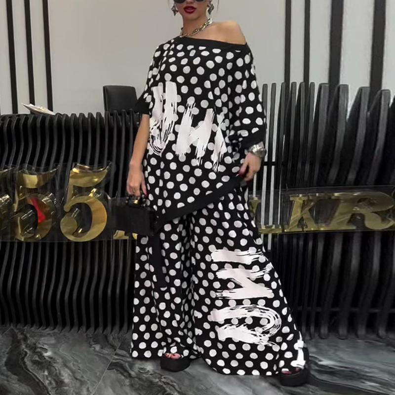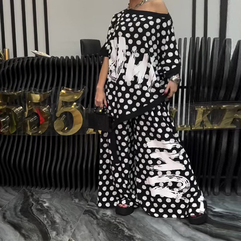 Lieferumfang: 1× Modischer Zweiteiler für Damen: Oversize-Shirt und Hose mit weitem Bein
