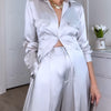 Langes Damen-Set in einfarbigem Glanz mit Hemdkragen