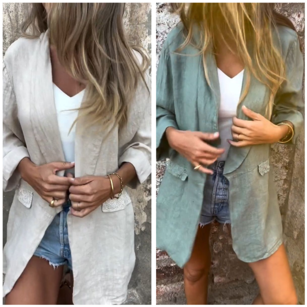 ⏳Begrenzte Zeit 50% Rabatt💥Damenblazer aus Baumwolle und Leinen mit offener Front